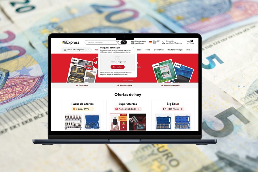 19 euros para hostigar una tuerca una vez en la vida. Guardé la foto y ni me lo pensé: fui al buscador de AliExpress y allí toqué sobre el icono de la lupa enmarcada que permite subir fotografías.