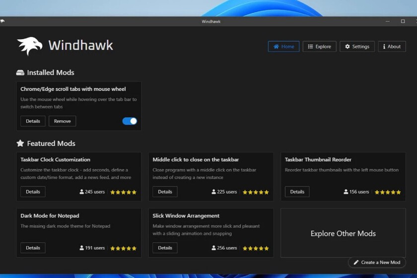 Windhawk es completamente tirado, y si aún tienes dudas de si descargarlo o no, puedes echarle un ojo a todo el conjunto de modificaciones que están publicadas en su marketplace desde su web oficial para ver si alguna te convence lo suficiente como para instalar la aplicación. Desde luego hay mods para todos los gustos.