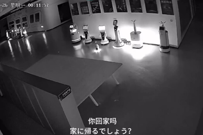 El vídeo procede de un showroom de robótica en Shanghái en el que vemos cómo un pequeño autómata acaba convenciendo a otro comunidad de robots para que dejen su trabajo y se vayan a casa con él. Se hizo vírico en las redes sociales chinas acaparando millones de reproducciones. Parece que su cautivador voz incluso acabó encandilando al resto de su clase.